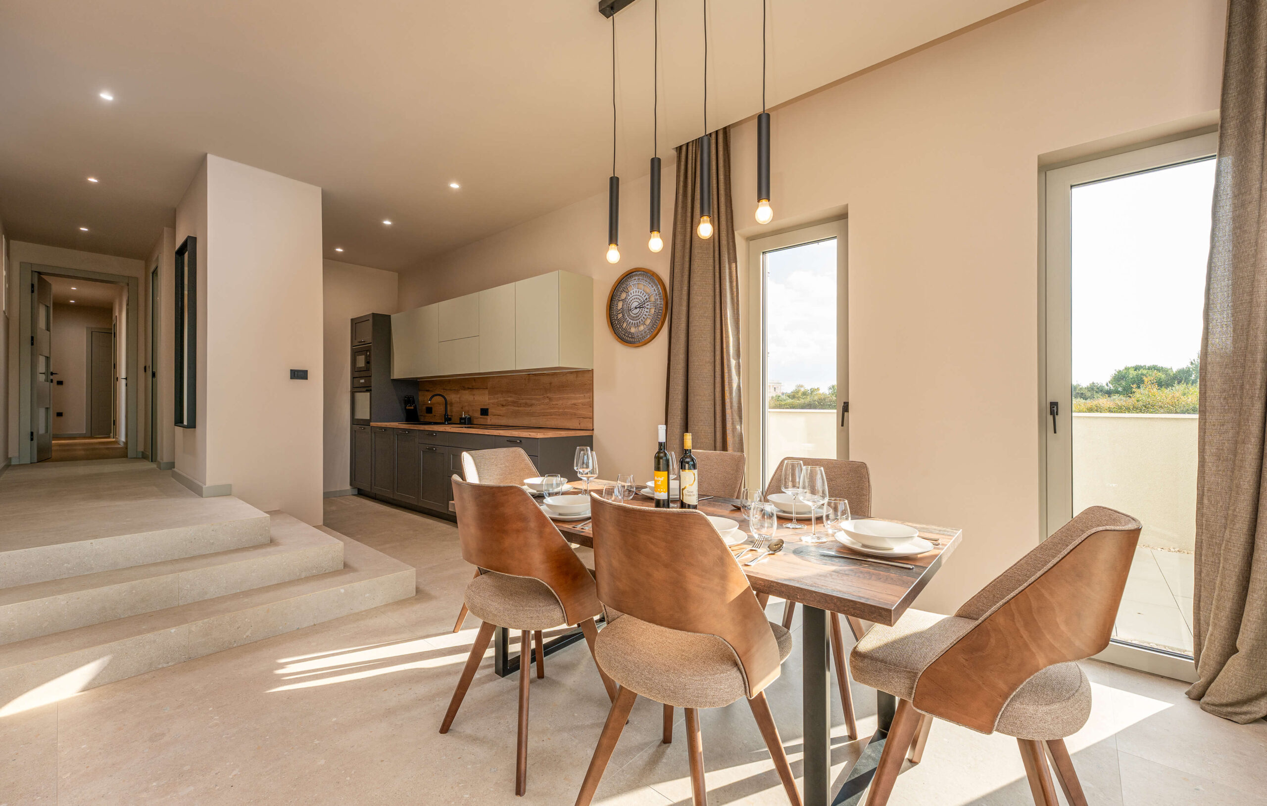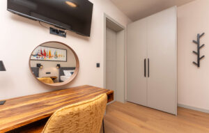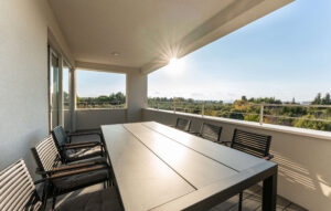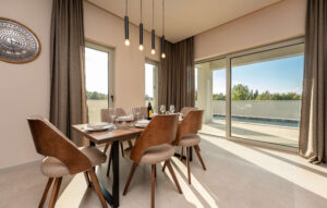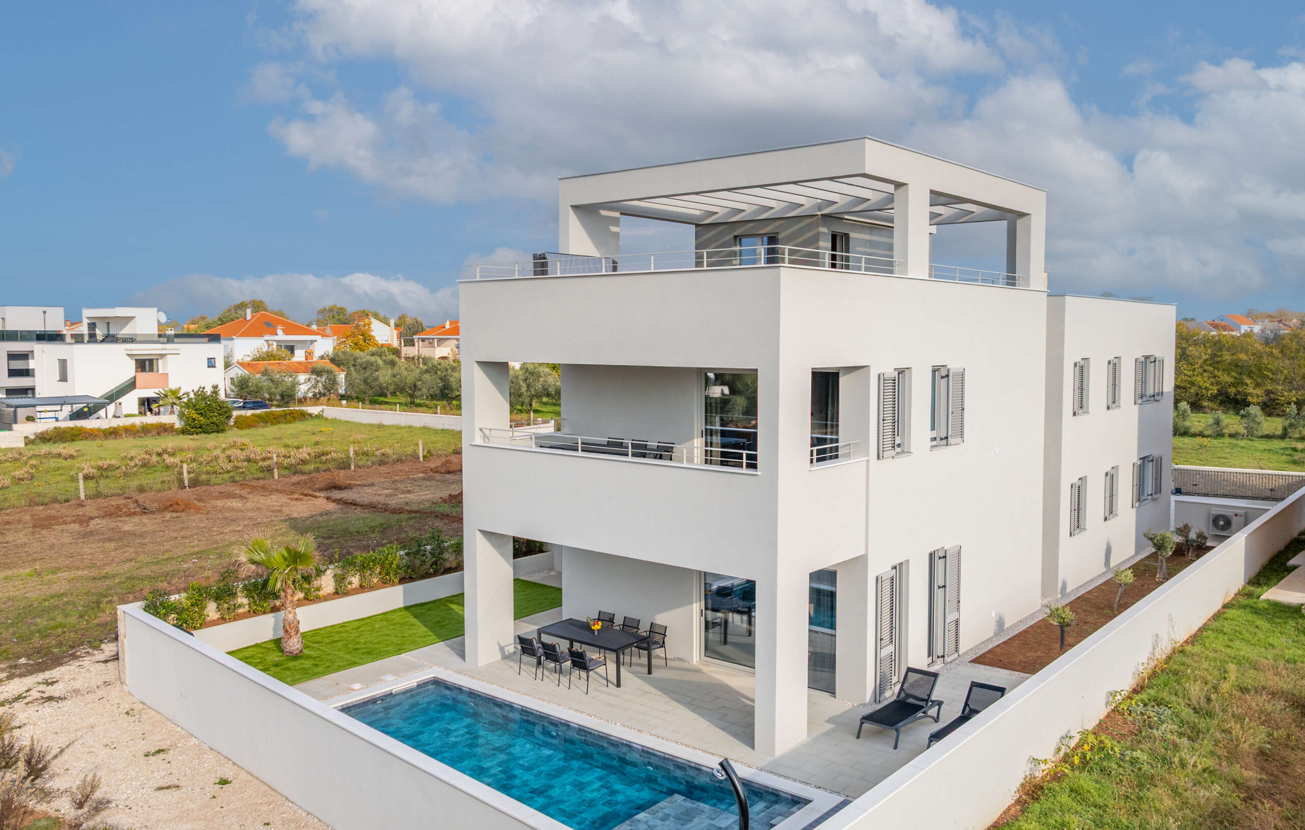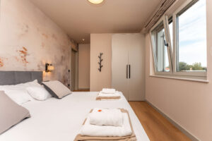 Objekt nudi smještaj s privatnim grijanim bazenom (cca 30 m²), besplatnim WiFi-jem i parkingom te sadržajima za djecu. Kuća se prostire na 270 m², sadrži 6 spavaćih soba, 2 dnevna boravka, 4 kupaonice, 2 potpuno opremljene kuhinje te čajnu kuhinju na krovu. Tijekom dana, gosti mogu uživati na suncu, ali i u hladu natkrivenih terasa, dok se uvečer mogu preseliti na terasu na krovu kuće koja sadrži masažnu kadu i s koje se pruža pogled na more. Popodnevni odmor gosti mogu provesti u luksuzno opremljenom interijeru sa smart TV-om i klima uređajem u svakoj prostoriji, dok je za djecu osiguran Play Station 5 na svakom katu.