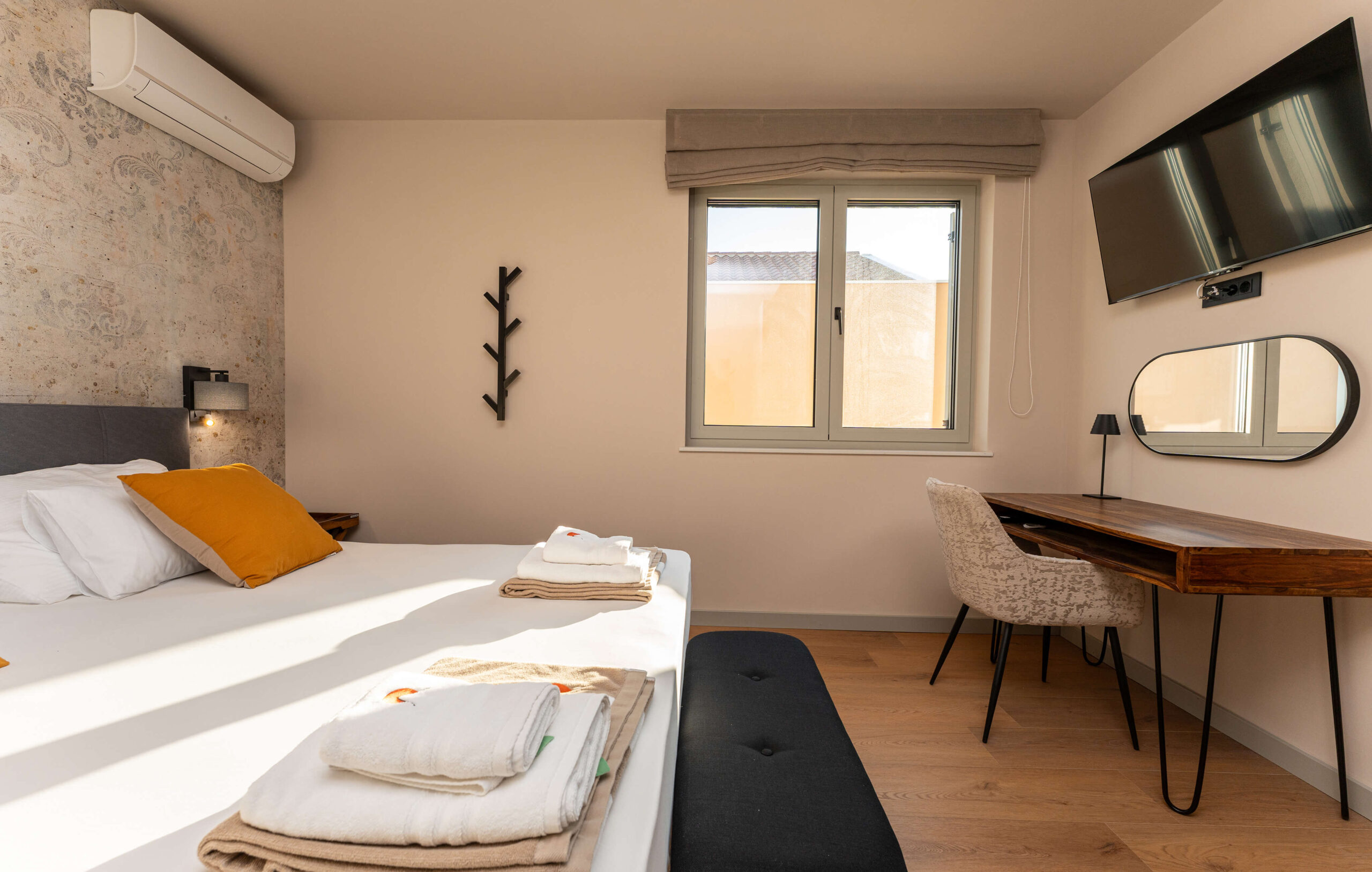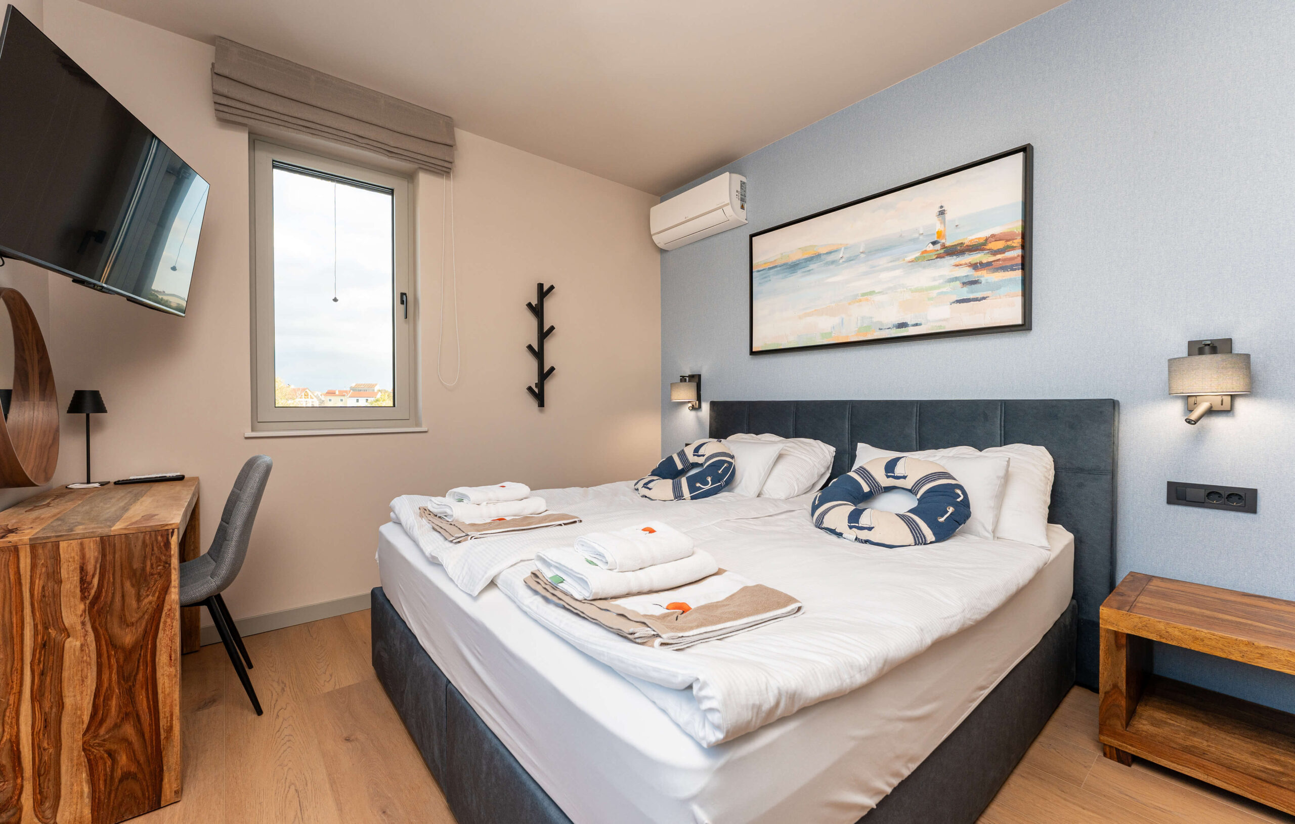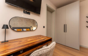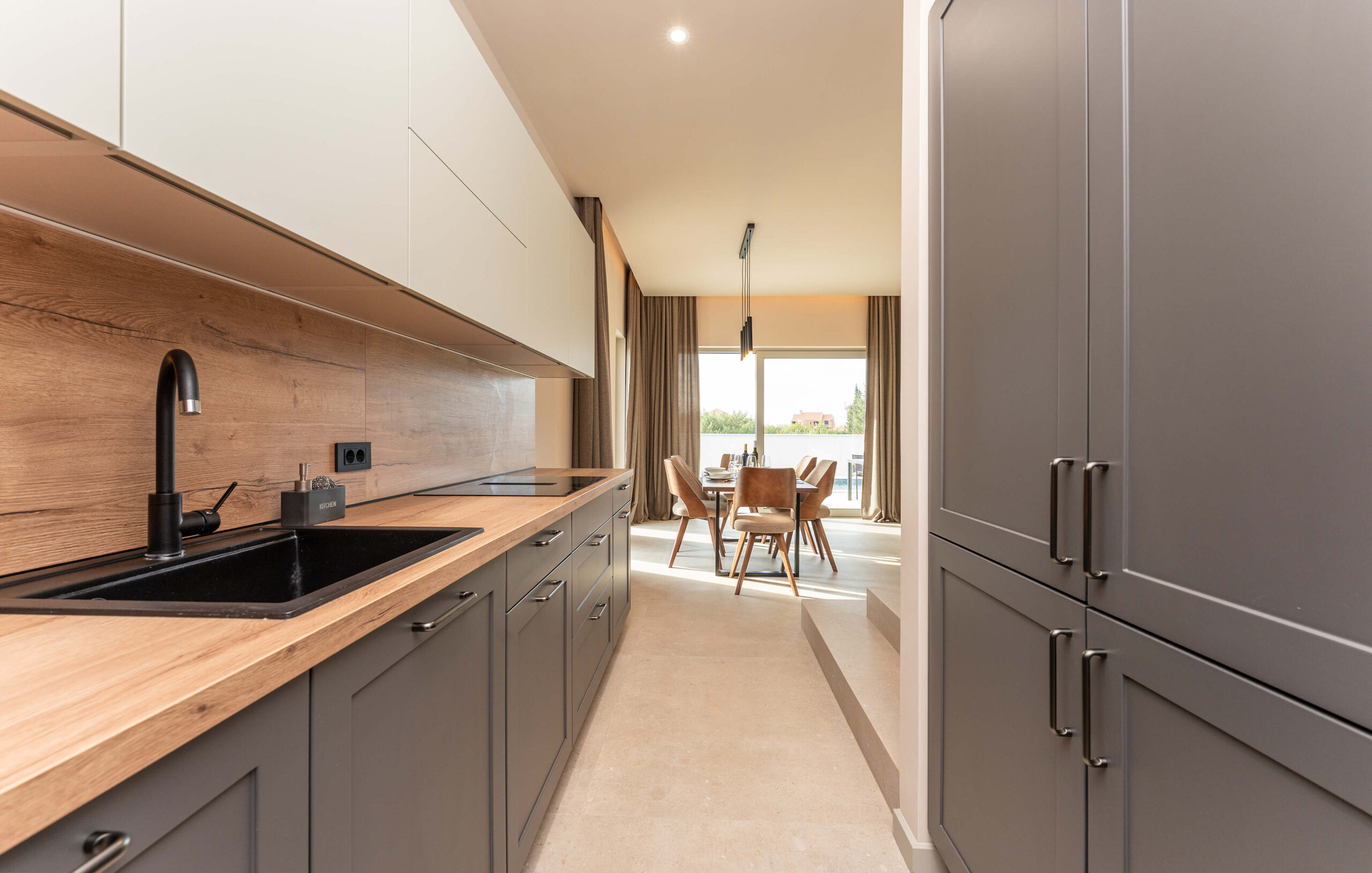 Objekt nudi smještaj s privatnim grijanim bazenom (cca 30 m²), besplatnim WiFi-jem i parkingom te sadržajima za djecu. Kuća se prostire na 270 m², sadrži 6 spavaćih soba, 2 dnevna boravka, 4 kupaonice, 2 potpuno opremljene kuhinje te čajnu kuhinju na krovu. Tijekom dana, gosti mogu uživati na suncu, ali i u hladu natkrivenih terasa, dok se uvečer mogu preseliti na terasu na krovu kuće koja sadrži masažnu kadu i s koje se pruža pogled na more. Popodnevni odmor gosti mogu provesti u luksuzno opremljenom interijeru sa smart TV-om i klima uređajem u svakoj prostoriji, dok je za djecu osiguran Play Station 5 na svakom katu.